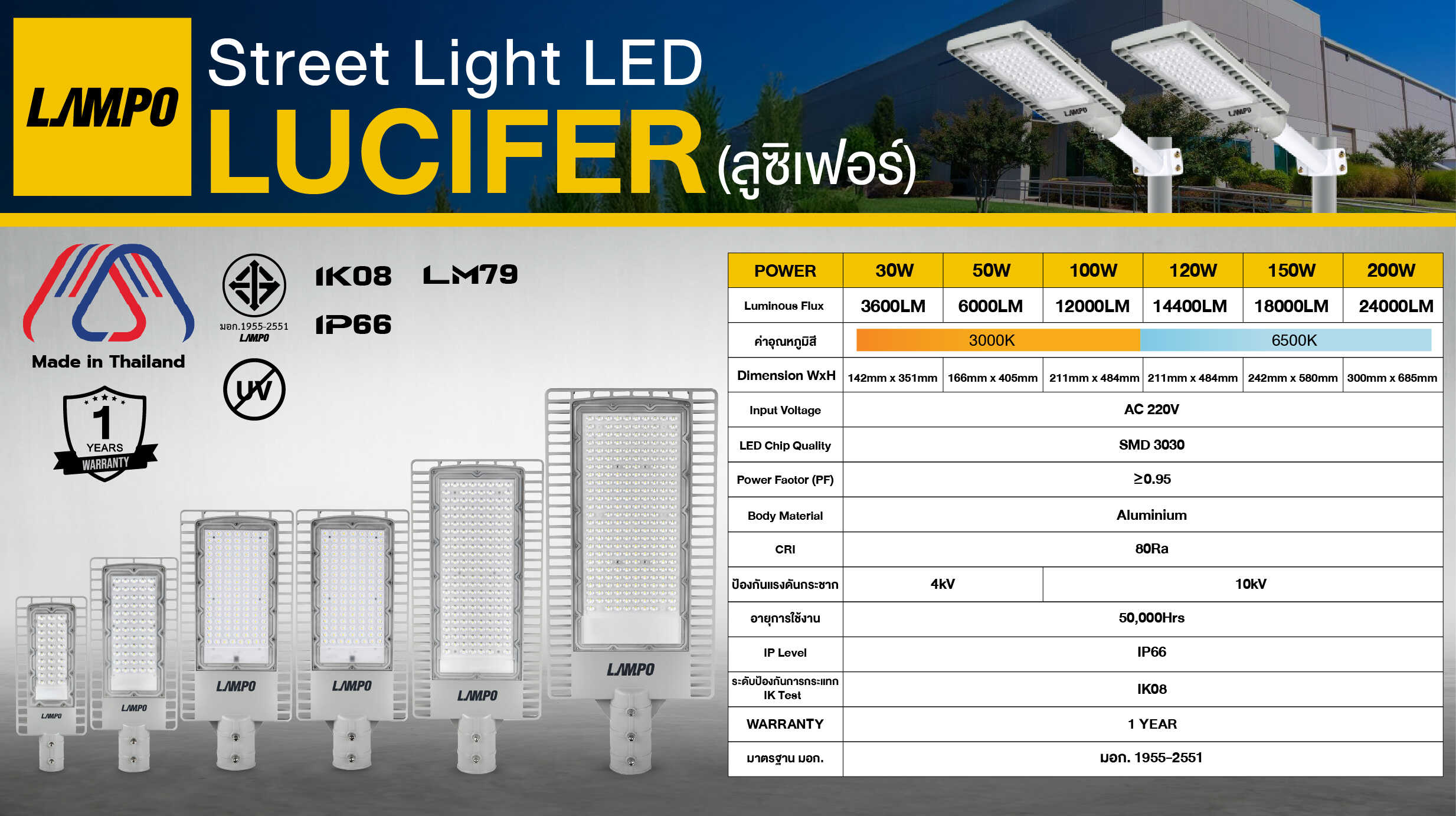 ด้วยการออกแบบที่คำนึงถึงทั้งประสิทธิภาพและความสวยงาม โคมไฟถนน LAMPO จึงเป็นตัวเลือกที่ตอบโจทย์ทั้งด้านคุณภาพ ความคุ้มค่า และความน่าเชื่อถือ พร้อมรองรับงานโครงการทุกขนาด และช่วยเสริมภาพลักษณ์ด้านพลังงานและความปลอดภัยให้กับพื้นที่ของคุณได้อย่างสมบูรณ์แบบ