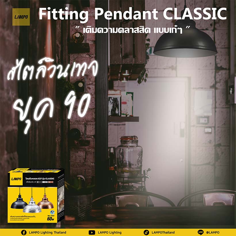 1.เลือกโคมไฟที่ตรงกับสไตล์คลาสสิคของคาเฟ่ เช่น โคมไฟที่มีดีไซน์เป็นสามเหลี่ยมหรือวงกลม